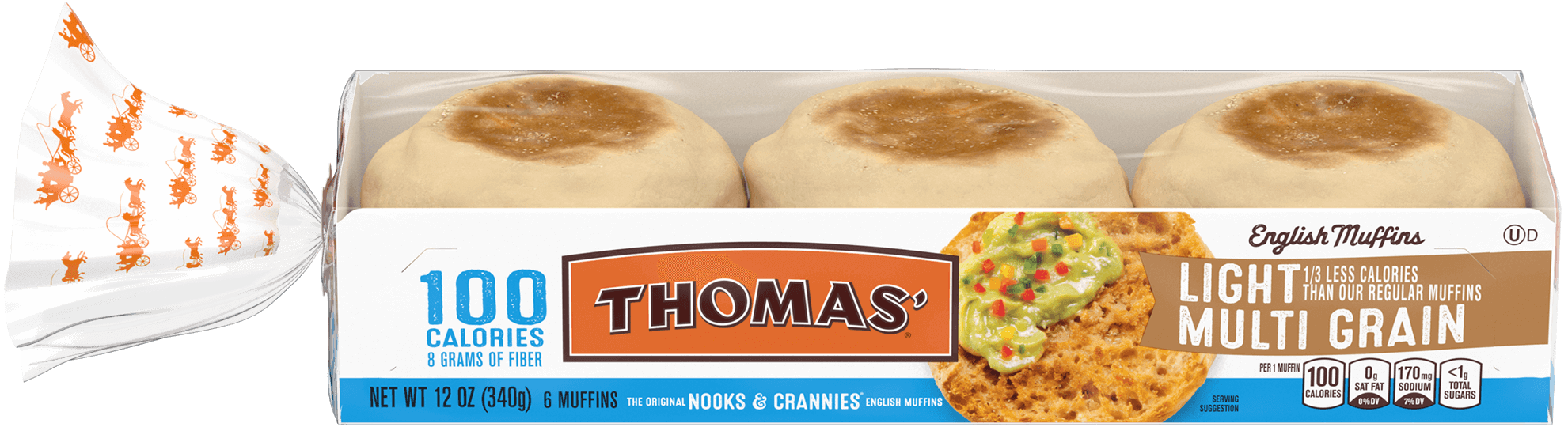 A lighter take on our classic Multi-grain English Muffins. 100 calories and 8g of fiber make them the right choice any time of day.